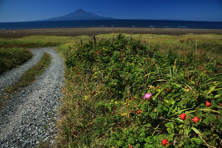海岸にはハマナス。この赤い実は食べられるのか?と思っていたが、実はこれ、ローズヒップというらしい。