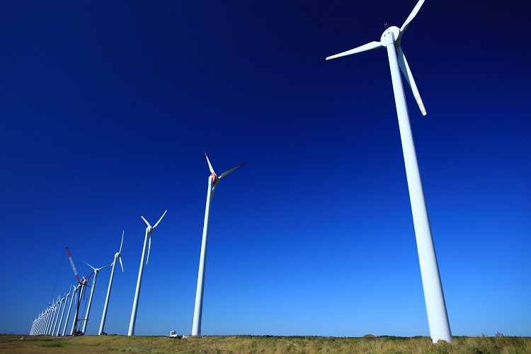 幌延町、オトンルイの風力発電。28基の風車が約3キロに渡ってつづく。