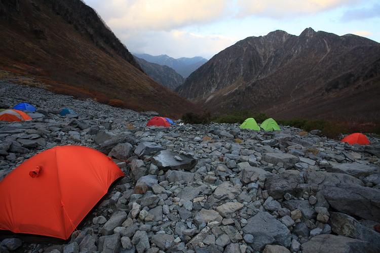ヒュッテの真下はキャンプ場。10月半ば、夜の気温は氷点下だ。