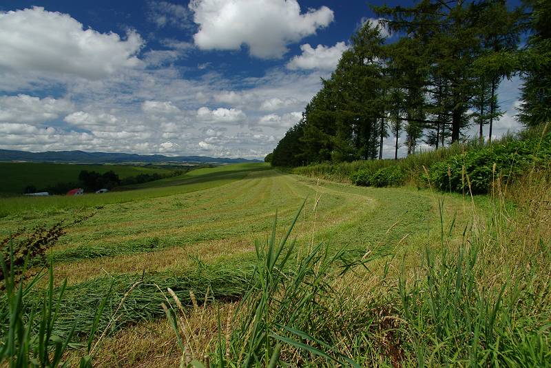 天気の良いうちに、牧草が大急ぎで刈り取られていく。