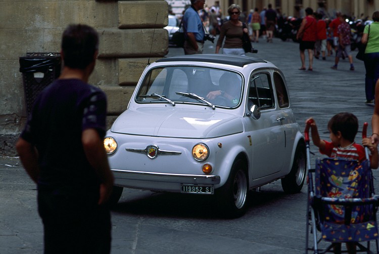 爆音を響かせて、チンクチェントがスタートする。体に似合わず凄い音がするので、誰もが振り返ってしまう。