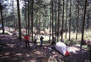 テントサイトは杉林の斜面中腹にあって、街灯が無いので真っ暗である。