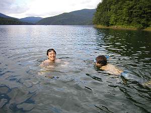 このように3人して遂に然別湖で泳いでしまった。一旦泳ぎ始めてしま