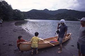 我々がやってくると子供はすぐにカヌーに興味を示して近付いてきた