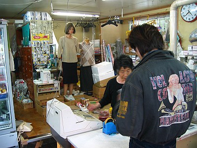 いつもの商店で買い物。後方のマネキンが異様に気に掛かる。