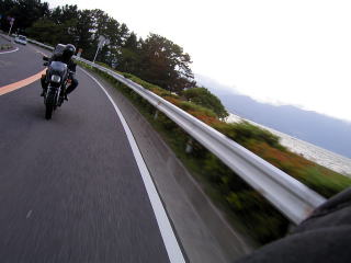 湖畔の道路を快適なペースで飛ばす。ここから妙に風が強くなり、急激に寒くなってしまった。